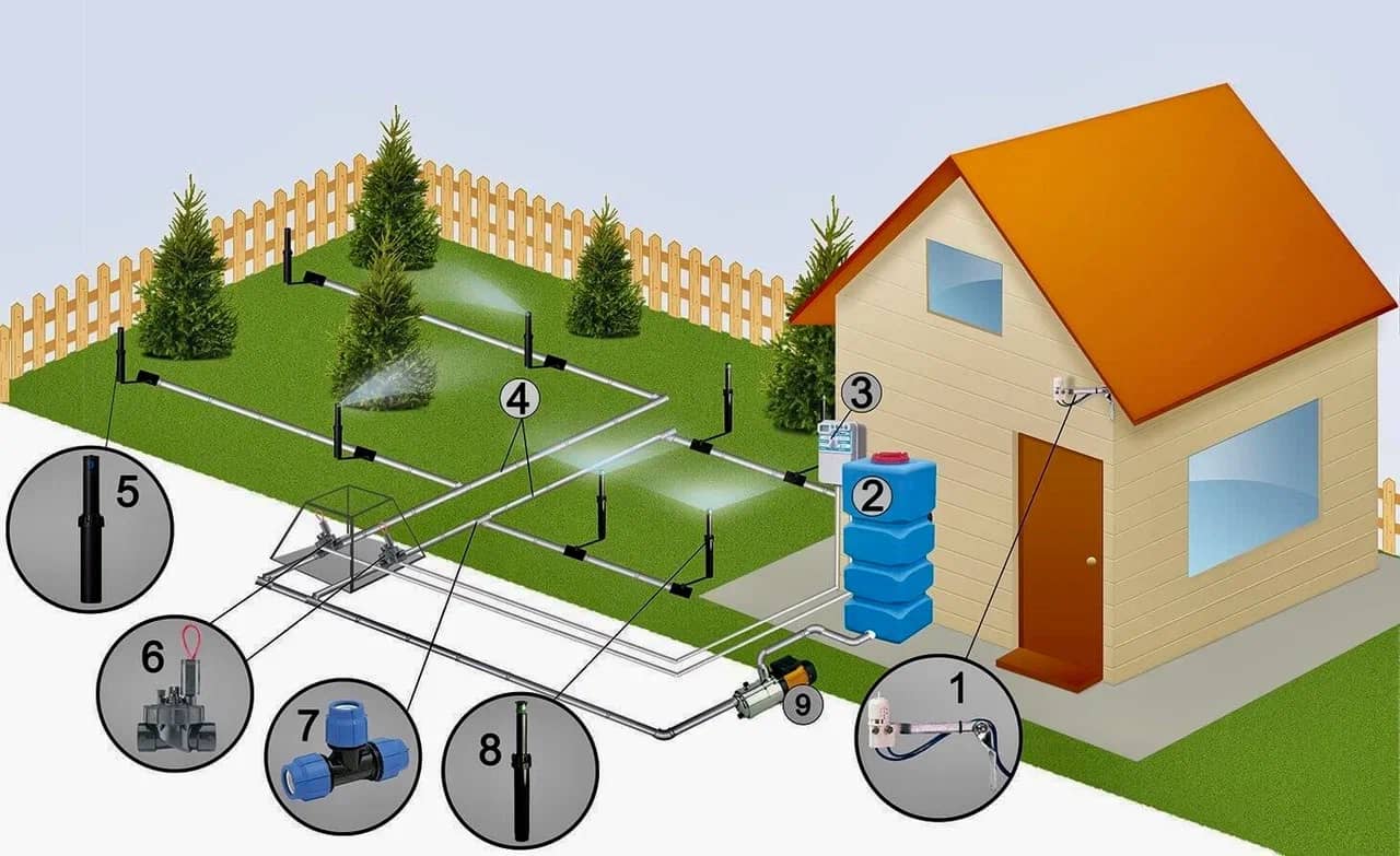 • Зонирование участка под разные типы полива (дождевание, капельный и т.д.)